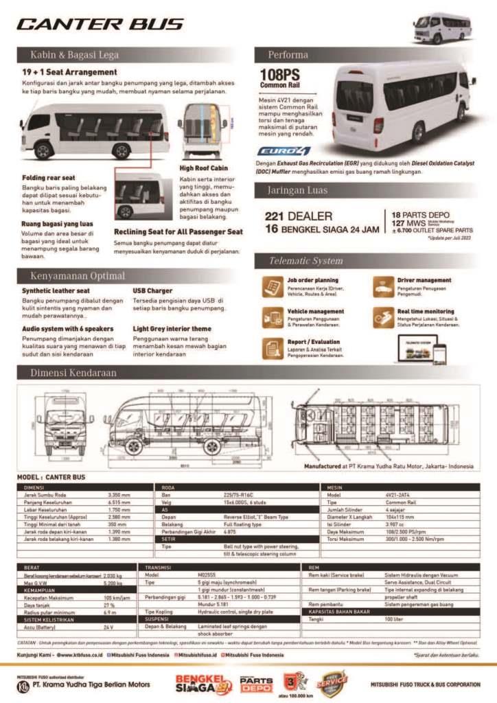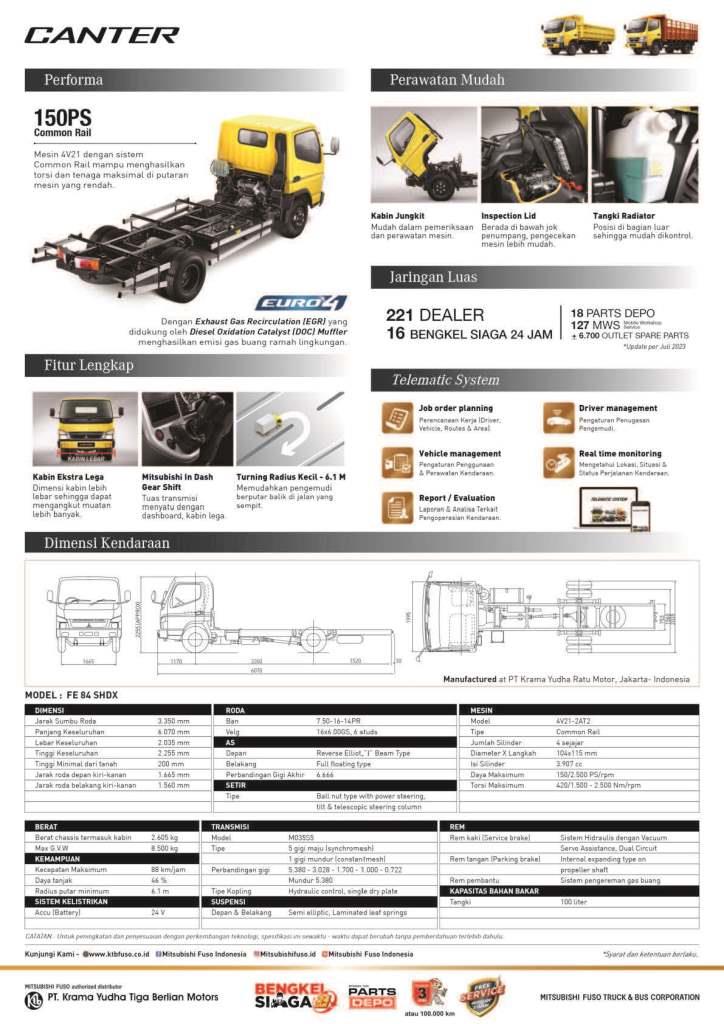 Sesuai untuk pengusaha di industri pertambangan, ekspedisi, pertanian dan perkebunan dengan beban muatan kategori ringan. Truk Canter baru dilengkapi dengan fitur lengkap yang akan memudahkan dalam mengendara dan juga sistem perawatan menjadi lebih mudah.